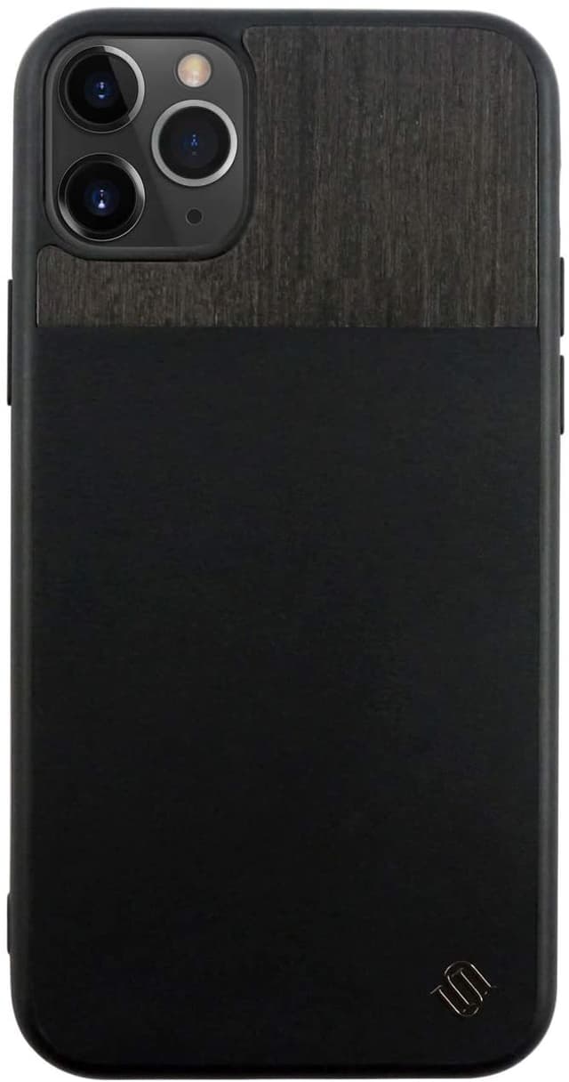 • Miljøvennlig ekte lær / Wooden iPhone 11 Pro deksel - Black