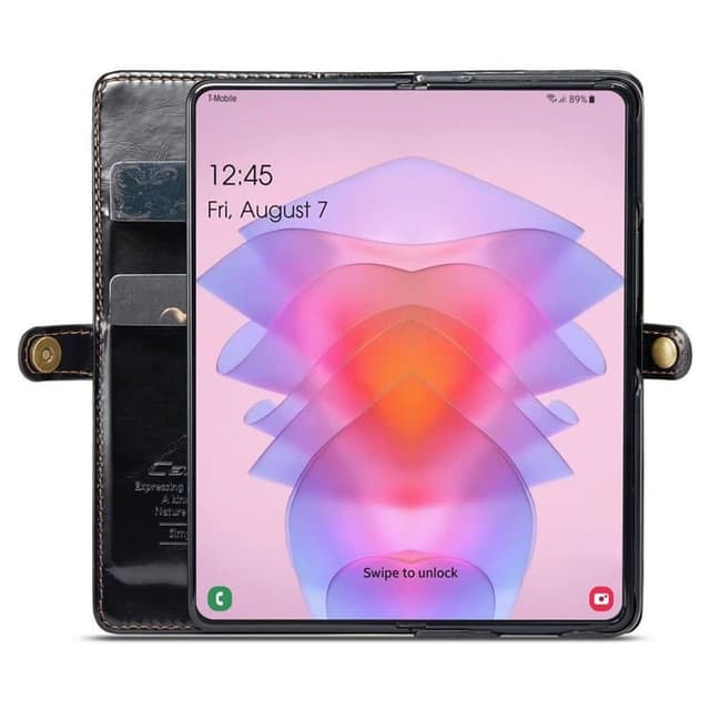 Svart Mobil lommebok skinn med 3 kort og sedler til Samsung Galaxy Z Fold 5.
