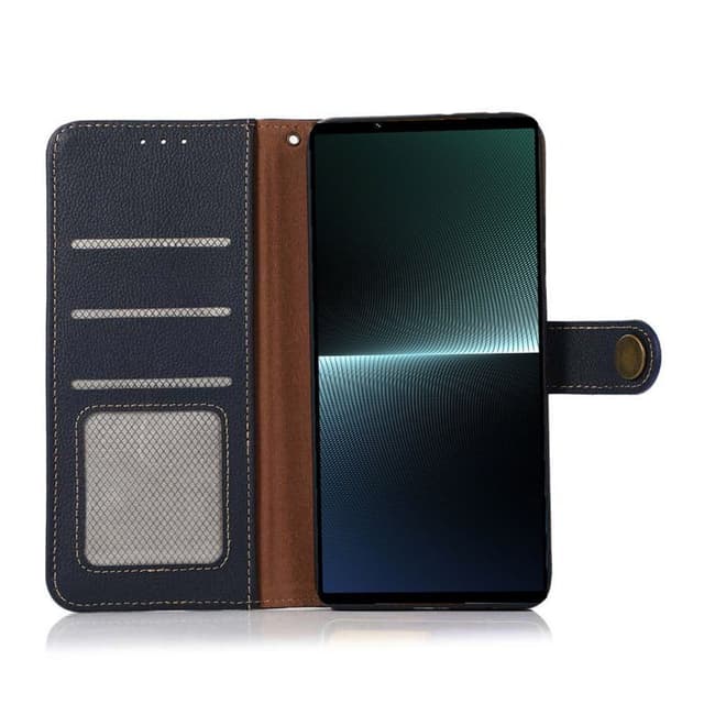 Blå Mobil lommebok Ekte lær med 3 kort og sedler til Sony Xperia 10 V.