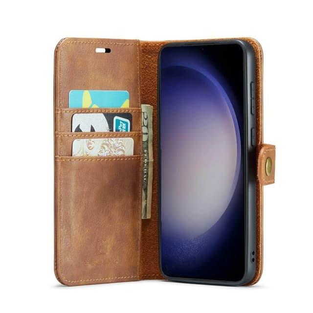Magnetisk Deksel gjør det enkelt å fjerne det fra telefonen. også praktisk hvis du vil la lommeboken ligge hjemme. Spesifikasjoner Farge: Brun Antall spor: 3 Seddelrom: 1 Kompatibilitet: Samsung Galaxy S23 Plus Modell nr: SM-S916B/DS Produsent: DG Ming Materiale: Myk Pu-lær Annet: Magnetisk knappelås