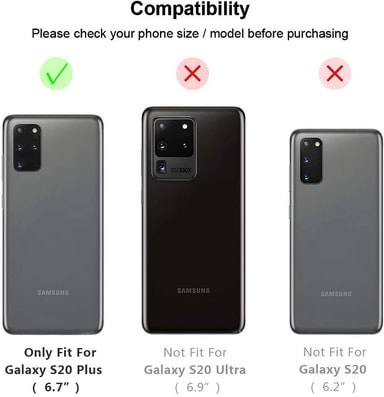 Nøyaktige utskjæringer for Samsung Galaxy S20 Plus: Mobildekselet har et presist design og eksakte utskjæringer for Samsung Galaxy S20 Plus, noe som betyr at du aldri trenger å fjerne dekselet når du har satt det på. Du vil alltid ha full tilgang til alle stikkontakter og porter på smarttelefonen din.