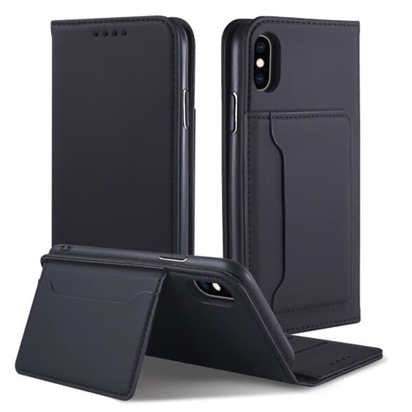 Dekselet har lommer for dine kort og en støtte så at du kan oppbevare telefonen horisontalt.