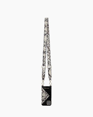 Hypnotisk Snake har et slående design som vekker mystikk og overflod med en følelse av natt. Dette markerte designet kombinerer en uimotståelig forlokkelse med kolliderende dyreavtrykk samt gullfargede detaljer. En diskret konvolutt-klaff holder med eleganse opptil to kort og produktet tilbyr tidløs allsidighet og kan brukes som en crossbody, kjede eller på skulderen.