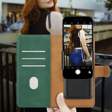 HØYKVALITETSBAR BEHANDLING: Det robuste flipcase-etuiet i vegansk kunstlær gir ideelt grep og omfattende beskyttelse rundt hele telefonen. Booklet-etuiet beskytter begge sider og sikrer langvarig bruk.