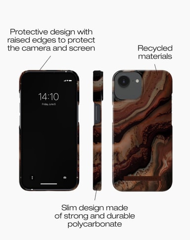Printed Case iPhone 13 / 14 / 16e Dark Amber Marble