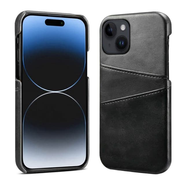 Elegant og glatt Svart retro deksel med integrerte kortrom på baksiden til Apple iPhone 15.