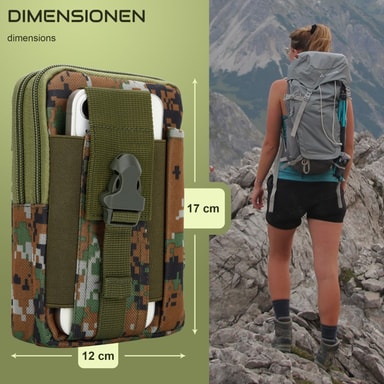 Det taktiske etuiet er perfekt for friluftsentusiaster. Etuiet er laget av sprut- og slitesterk polyester av høy kvalitet, er robust og beskytter telefonen mot riper og skader. Kamuflasjeutseendet gir den en stilig militær designLes mer om produktet