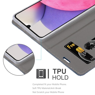 Cadorabo lommebokdeksel i jeansdesign uten synlig lukkemekanisme