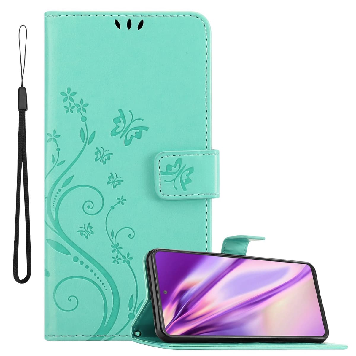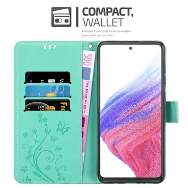 Samsung Galaxy A53 5G lommebokdeksel Blomster (turkis)