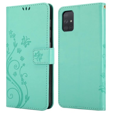 Samsung Galaxy A71 4G lommebokdeksel Blomster (turkis)