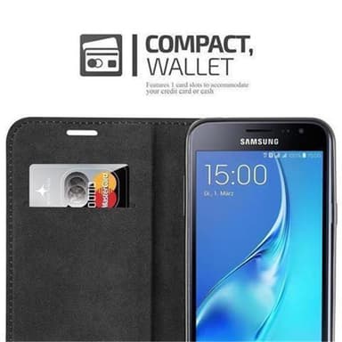 Lommebokdeksel til Samsung Galaxy J3 2016 har kortspor og stativfunksjon. Med dette dekselet er telefonen perfekt beskyttet. Dekselet er laget av materialer av høy kvalitet. Alle porter er fritt tilgjengeligeLes mer om produktet