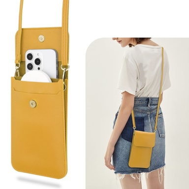 Mini-mobiltelefontasken med 2 ekstra rom for kort og kontanter er perfekt til hverdagsbruk. Det gjennomsiktige berøringsvinduet gjør det enkelt å bruke. Den lange bærestroppen er også justerbar og avtakbar.
