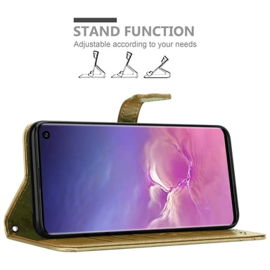 DESIGN: Etuiet i kunstskinn i en søt design tilbyr kortspor og et annet rom for kontanter. Med stativfunksjonen kan du enkelt justere smarttelefonen slik du ønsker å se filmer eller gjennomføre videokonferanser.