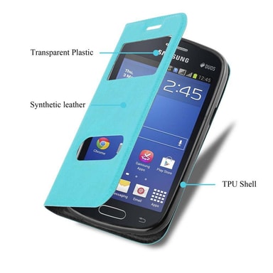 Lommebokdeksel for Samsung Galaxy TREND LITE med magnetisk lukking 2 visningsvinduer. Med dette dekselet er telefonen perfekt beskyttet. Dekselet er laget av materialer av høy kvalitet. Alle porter er fritt tilgjengeligeLes mer om produktet