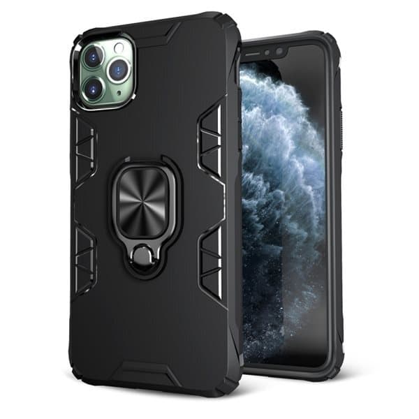 Støtdempende TPU beskyttelsedeksel til iPhone 11 Pro Max med innbygd ringholder / stativ. Et tynt og smidig mobildeksel som gir telefonen et sikkert grep og beskytter mot smus, støv, riper, slag og slitasje uten å addere vekt eller virke klumpete. TPU dekselet har en tettsittende passform for optimal beskyttelse men gir full tilgang til telefonens alle porter og knapper. Den smarte mobilringen på dekselets bakside kan vinkles og dreies i ulike posisjoner for å brukes som fingerholder for et sikrere grep eller som stativ ved horisontell visning av film m.m.