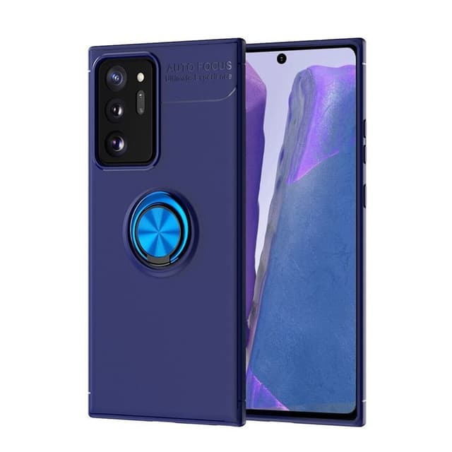 Mobilt deksel med integrert fingerring / selfing med metallplate som er kompatibel med magnetiske mobile holdere f.eks i bilen når den har en metallplate, kompatibel med magnetiske bilholdere. Ringen kan dreies 360° og fungerer også som et stativ.