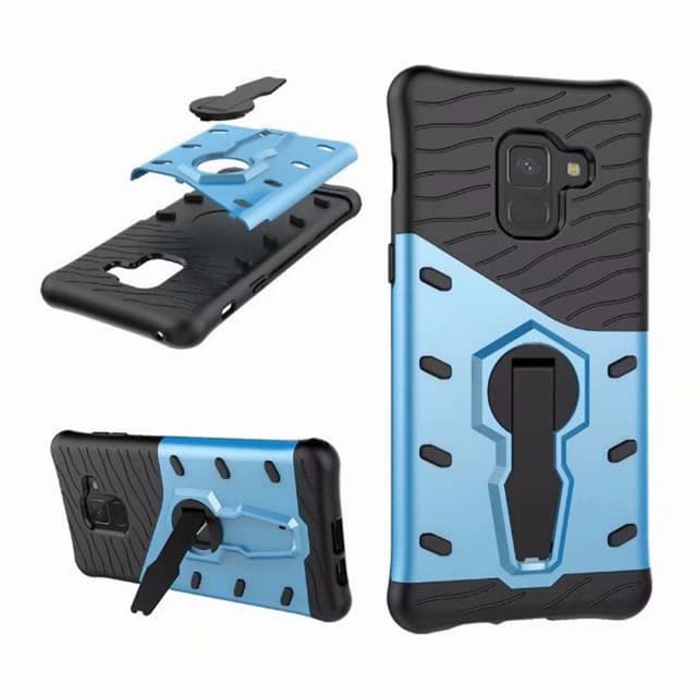 Sniperdeksel uppbyggt i två lager, ett TPU skal (silikon) och ett plast skal med inbyggt 360° roterbart ställ / kickstand för t.ex filmvisning.