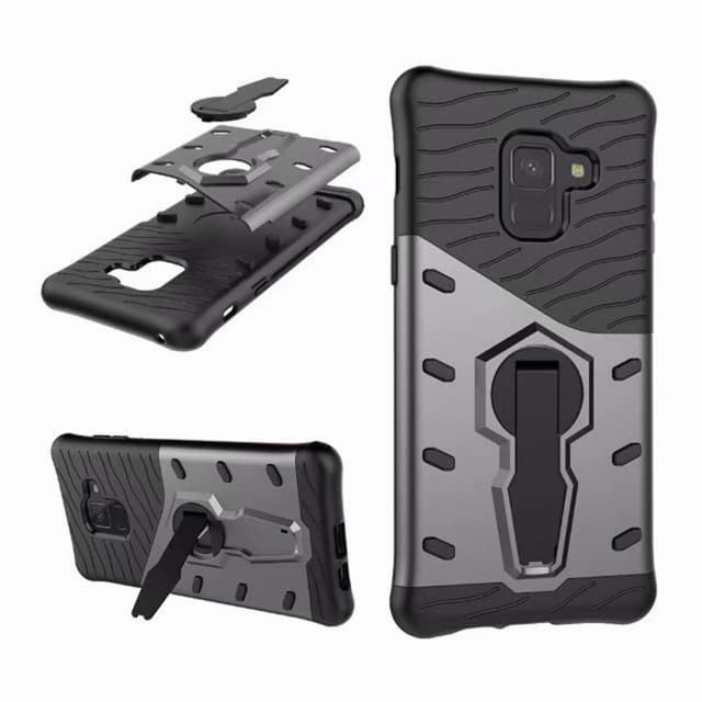 Sniperdeksel uppbyggt i två lager, ett TPU skal (silikon) och ett plast skal med inbyggt 360° roterbart ställ / kickstand för t.ex filmvisning.