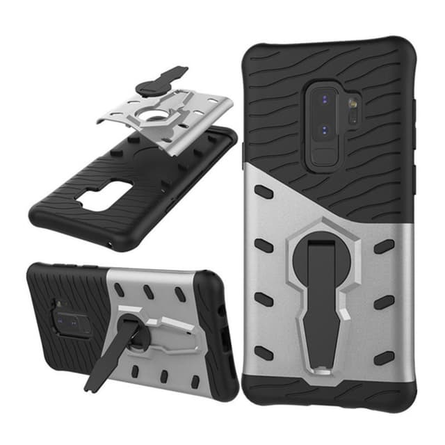 Sniperdeksel uppbyggt i två lager, ett TPU skal (silikon) och ett plast skal med inbyggt 360° roterbart ställ / kickstand för t.ex filmvisning.