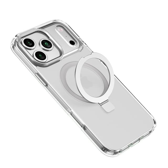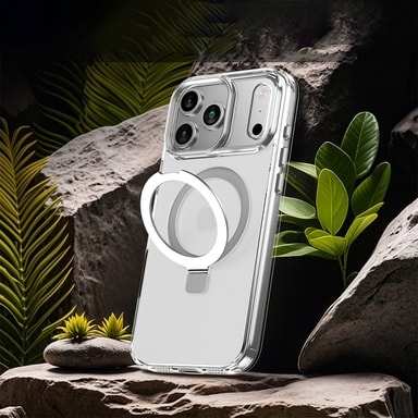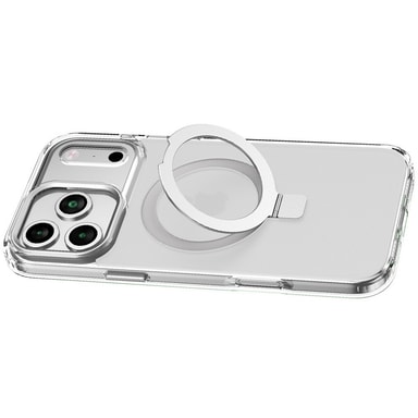 Sølvfarget iPhone 15 Pro Max-deksel med støtsikker TPU, magnetisk trådløs lading og en usynlig støtte. Tilbyr overlegen beskyttelse og håndfri bekvemmelighet i en elegant design.Les mer om produktet