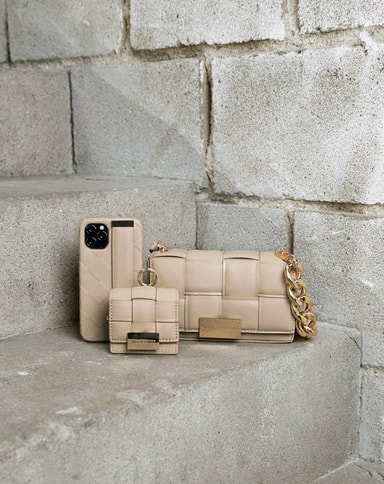 Statement Case i Braided Light Camel fremkaller bevegelse, dybde og luksus med et sammenflettet design og en vakker kamelfarge. Inspirert av savoir-faire i klassisk håndverk, noe som gir designet en flott eleganse.