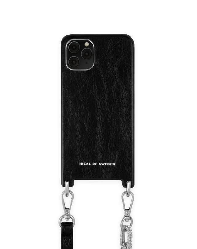 Statement Necklace Case handler om detaljer, med en dyp svart farge og en asymmet-risk stropp pyntet med krystall-lignende juveler.Les mer om produktet