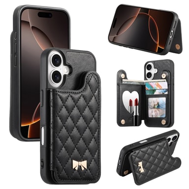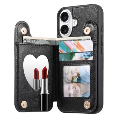 • Stilig lommeboketui kompatibelt med iPhone 17 Air med kortholder, støtte og sminkespeil Sort