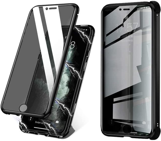 Mobildekselet er laget av herdet glass og gir ypperste beskyttelse for hele telefonen. Skallet gir beskyttelse både foran og bak, og er også designet med personvern, slik at du beskytter ditt privatliv, siden du ikke ser skjermen fra siden, men du må se på den rett fra fronten. Kombinasjonen av metallrammen og herdet glass gir telefonen en høy styrke, og den er beskyttet mot mindre riper og store skader. Bare fest skallet ved hjelp av multimagnetutformingen som holder dekselet på plass. Mobildekselet er tynt og passer lett i hånden.