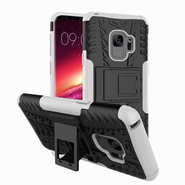 Armor som består av to lag, det vil si et silikondeksel (silikon) og et plastdeksel med innebygd stativ / kickstand for f.eks filmscreening.