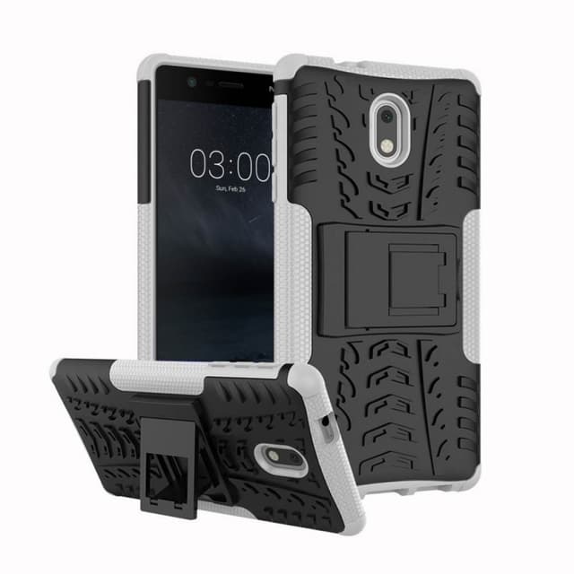 Armor som består av to lag, det vil si et silikondeksel (silikon) og et plastdeksel med innebygd stativ / kickstand for f.eks filmscreening.