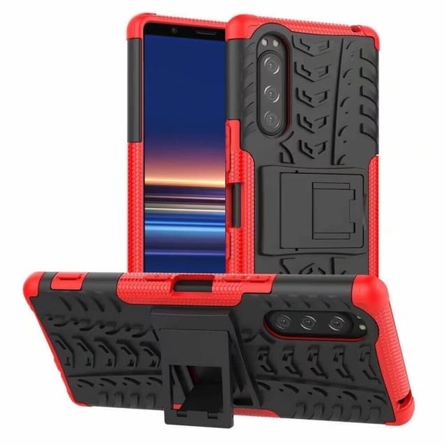 Armor som består av to lag, det vil si et silikondeksel (silikon) og et plastdeksel med innebygd stativ / kickstand for f.eks filmscreening.
