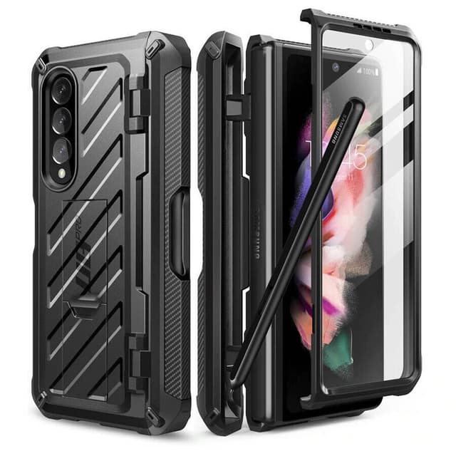 360° solid mobildeksel i tøff design og ekstra forsterkede hjørner. Det mobile dekselet består av polykarbonatfront. Baksiden av polykarbonat og integrert ramme, praktisk for filmvisning eller som en fingerholder. Tilgang til telefonens funksjoner, knapper, kamera, kontakter osv. Beskyttede kontakter og knapper. Mobildekselet støtter også trådløs lading. Spesifikasjoner Produsent: SUPCASE Unicorn Beetle Pro Kompatibelt med: Samsung Galaxy Z Fold 3 Modellnr: SM-F926B Materiale 1: TPU ( Thermo Plastic Urethane ) Materiale 2: PC ( Poly Carbonate ) Farge: svart Trådløs lading: Ja Pennholder: Ja Integrert stativ: Ja Integrert skjermbeskytter: Ja.