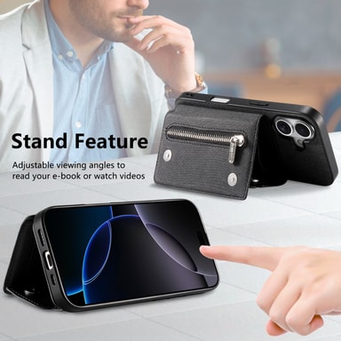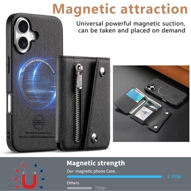 Praktisk kortholder: Denne magnetiske lommebokvesken kompatibel med iPhone 17 Pro Max har praktiske kortspor som lar deg bære viktige kort på farten. Du trenger ikke lenger å bære en separat lommebok, da denne vesken holder kortene dine trygge og lett tilgjengelige. Perfekt for reiser, shopping eller bare for å forenkle hverdagen. Kortsporene er designet for å holde kortene dine sikkert på plass, samtidig som de er enkle å ta ut når du trenger dem. Denne funksjonen gjør vesken ideell for brukere som ønsker å minimere hva de bærer med seg og holde det viktigste organisert. Den kombinerer funksjonalitet og bekvemmelighet i ett elegant design.