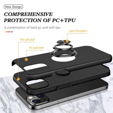 Hybrid telefonveske overalt med ringformet støttedesign til iPhone 15 Plus - svart Integrert ringholder muliggjør enkel enhåndsbetjening, kan også fungere som et 360-graders roterende stativ Innebygde CD-årer metallplate kan festes til magnetisk bilholder (ikke inkludert) Spesialdesigninteriør for varmeavledning Lukkede knapper, støvdeksel og smussbeskyttelse Beskytt baksiden av telefonen mot riper Kompatibel med: iPhone 15 Plus-pakken Inkluderer: 1 x Fingerring Kickstand Hybrid