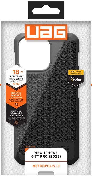 • UAG Metropolis Lite MagSafe iPhone 15 Pro Max etui (kevlar/sort)