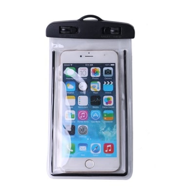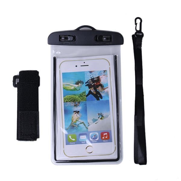 Med denne vanntette telefonposen kan du bekvemt styre alle funksjoner på telefonen under vann. De gjennomsiktige vinduene som er på begge sider er laget av supertynt 0.3 mm materiale. Doble vridbare lokk som er forseglbare. Den gir også beskyttelse til ID, bankkort, kontanter, MP3-spiller, mobiltelefoner og nøkler.