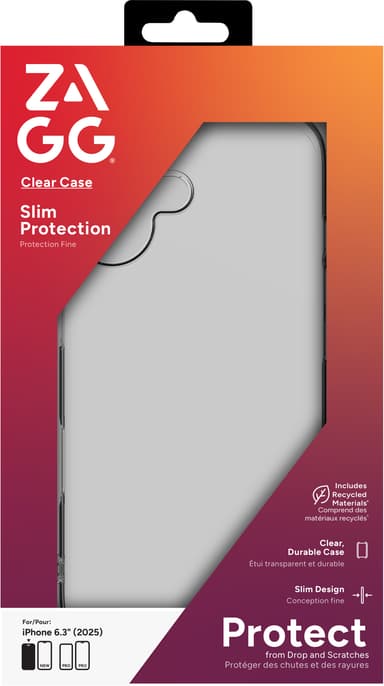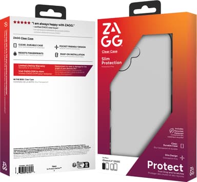 ZAGG klart deksel til iPhone 17 gir robust beskyttelse med gjennomsiktig termoplastisk polyuretan som passer perfekt til skjermen på 6,3 tommer og fremhever Apples design samtidig som det beskytter mot hverdagens slitasje.Les mer om produktet