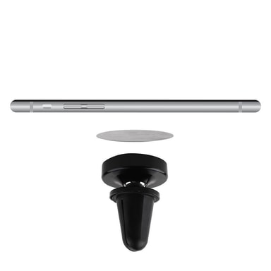 Magnetisk mobilholder vribar puck vifte. Montering i bilens ventilasjonsvifte. Levereres med metallplatemagnetisk holder for telefoner for montering i bilens ventilasjonsgitter. Fungerer med de fleste mobildeksler på markedet som har metall inne i dekselet. Leveres med metallplate for festing på baksiden av telefonen eller bak mobildekselet om nødvendig.