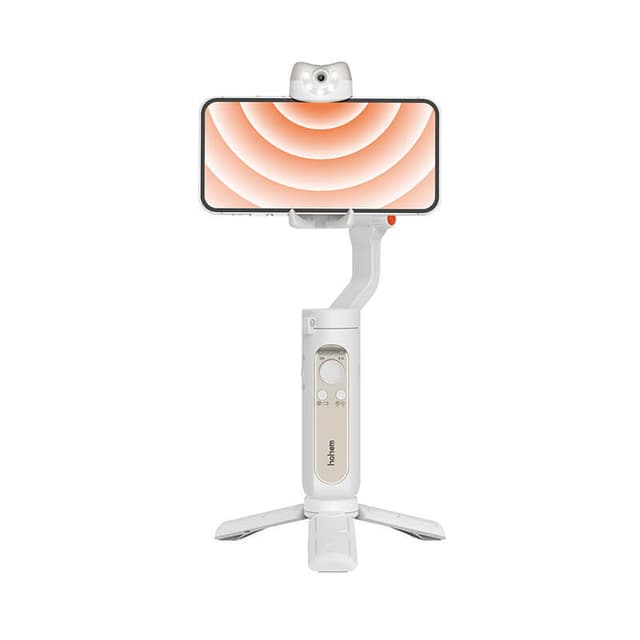 Hohem iSteady V2 er en 3-akset gimbalstabilisator for smarttelefon som er designet for automatisk ansiktssporing uten noen app nødvendig. Normalt konfigureres smart sporing i en app ved å spesifisere hva du skal spore. Men iSteady V2 har en AI-sensor innebygd i selve gimbalen, rett ved siden av smarttelefonens klemme. Sett gimbalen på det medfølgende ministativet og slå på AI-sensoren ved å trykke på en knapp på gimbalen. Når du er klar til å starte automatisk sporing, er det bare å vise passende håndbevegelse til gimbalen, så begynner den å følge deg langs de tre aksene når du beveger deg foran den. Denne funksjonen er nyttig for live streaming, videosamtaler, vlogging og kreative og kommersielle produksjoner. Gimbalen sporer ansiktet til personen som viste håndbevegelsen, selv om noen andre kommer inn i tagningen. Når du vil at den skal stoppe sporing, er det bare å vise en annen håndbevegelse.