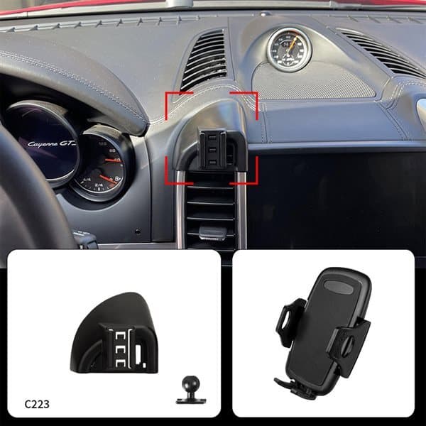 Denne todelte monteringsløsningen består av en justerbar mobilholder og en monteringsbrakett som er spesialdesignet for Porsche Cayenne årsmodeller 2016 og 2017. Braketten fungerer som en stabil monteringsplattform og festes på bilens instrumentpanel eller tilstøtende paneldeler – uten å skade bilinnredningen.
