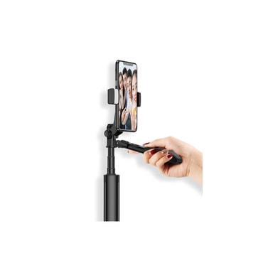 NORTH Fotostativ for Mobil. Passer til mobil opp til 6"""" (ekskl. Mobildeksel). To LED-lys med forskjellige innstillinger. Justerbar mellom 30-110 cm. Panoramaarm med avtakbar fjernkontroll. Bluetooth-fjernkontrollen har 10m rekkevidde. Kompatibel med iOS og AndroidBåde en smart selfie-pinne, og et frittstående stativ. Perfekt til Youtube, Insta, selfie-bånd etc., og som reisestativ for smarttelefonen. I forpakningen Multi-stativ To LED-lys Micro USB-kabel Bruksanvisning