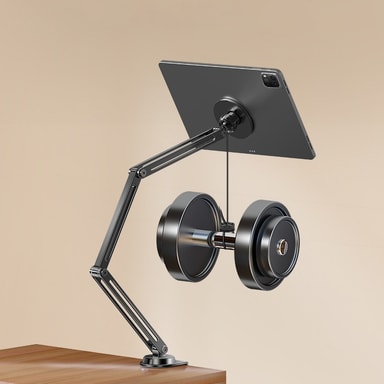 Enkelt oppsett: Det er en lek å sette opp vår sammenleggbare magnetiske telefonholder, takket være dens brukervennlige design og sikre klemmemekanisme. Den justerbare klemmen passer til de fleste skrivebord og sengerammer, og gir en stabil base for enheten din. Det magnetiske hodet gir rask og enkel feste og løsrivelse av telefonen eller nettbrettet, noe som sparer deg for tid og krefter. Ingen verktøy er nødvendig for installasjon, noe som gjør det til et problemfritt tillegg til arbeidsområdet eller oppholdsrommet ditt. Den sammenleggbare designen gir kompakt oppbevaring når den ikke er i bruk, og maksimerer plassutnyttelsen. Kompatibel med ulike enheter, inkludert smarttelefoner og nettbrett, tilbyr denne holderen en enkel og effektiv løsning for håndfri visning. Nyt bekvemmeligheten av enkelt oppsett og begynn å nyte favorittinnholdet ditt på kort tid. Den robuste konstruksjonen sikrer at enheten din forblir sikker og stabil, og gir trygghet under bruk.