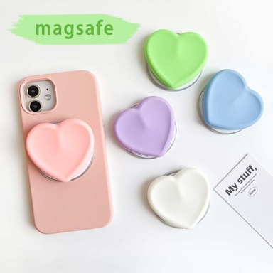 Forbedre telefonen din med dette silikon hjerteformede magnetiske MagSafe-stativet og grepet. Nyt håndfri visning og et sikkert grep kompatibelt med iPhone 12, 13, 14 og 15-serien. Utvidbart og stilig!Les mer om produktet