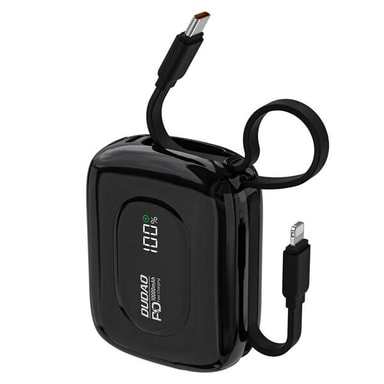 • Dudao Powerbank 22,5 W 10000 mAh med innebygd USB-C og lynkabel - Svart