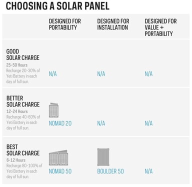 Lad Yeti 200X fra solen med vå re bæ rbare solcellepaneler mens du er borte fra nettet, og hold den toppet fra et vegguttak nå r du er hjemme.