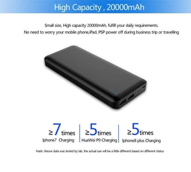 Powerbank 20000 mAh 45W USB-C PD og 2x USB-A