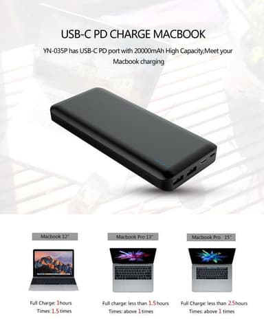 USB-C-porten med Power Delivery 2.0 lar deg raskt lade datamaskinene opp til 45W. Du kan også raskt lade mobiltelefonen din via USB-Cs ekstra batteri. Denne powerbanken har også 2 USB-tilkoblinger.Les mer om produktet