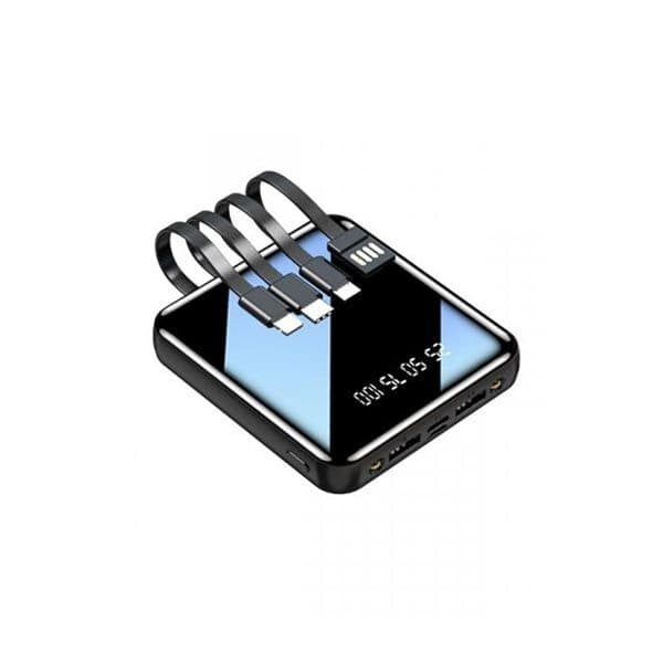 Powerbank Mini med 4 ulike ladekabler 10000 mAh