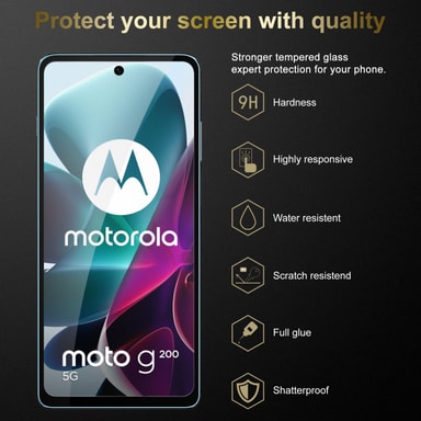 Skjermbeskytter for Motorola MOTO G200 5G 9H-hardhet med 3D Touch-kompatibilitet. Perfekt beskyttelse for din mobiltelefon. Laget av spesialbehandlet glass. Beskyttelsesglasset forlenger levetiden til skjermen. Vi anbefaler også å bruke et dekselLes mer om produktet