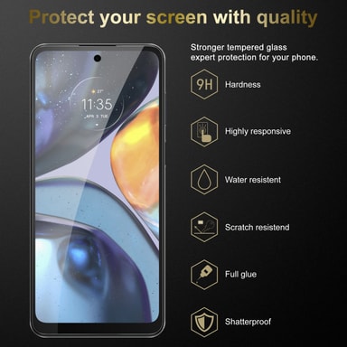 Skjermbeskytter for Motorola MOTO G22 9H-hardhet med 3D Touch-kompatibilitet. Perfekt beskyttelse for din mobiltelefon. Laget av spesialbehandlet glass. Beskyttelsesglasset forlenger levetiden til skjermen. Vi anbefaler også å bruke et dekselLes mer om produktet